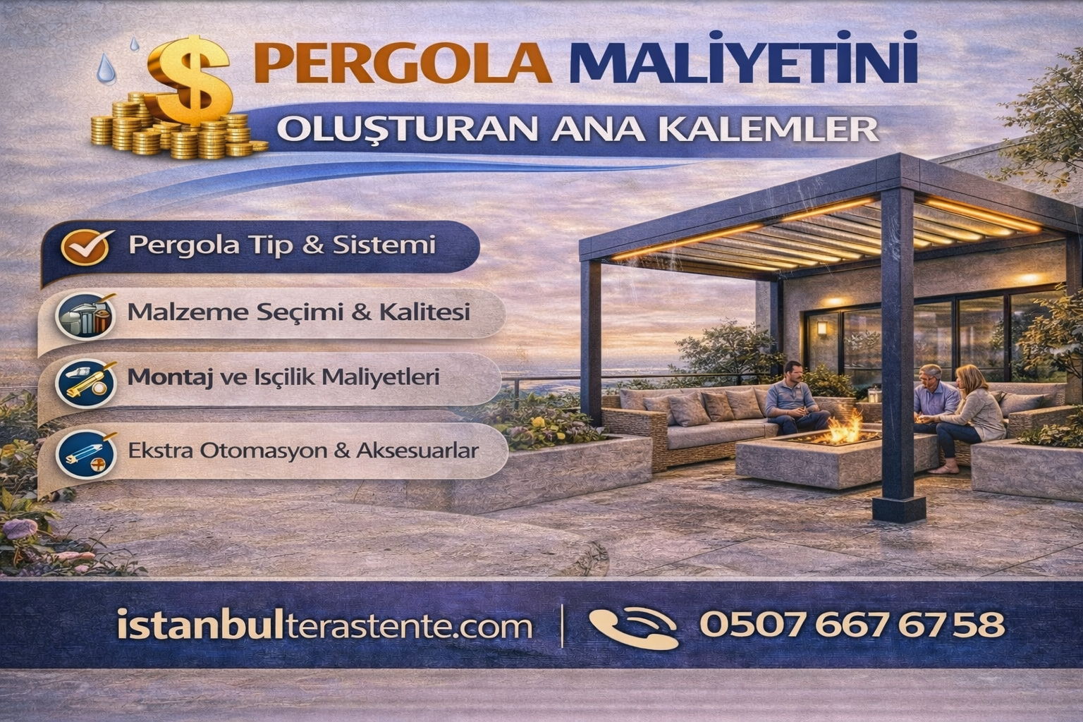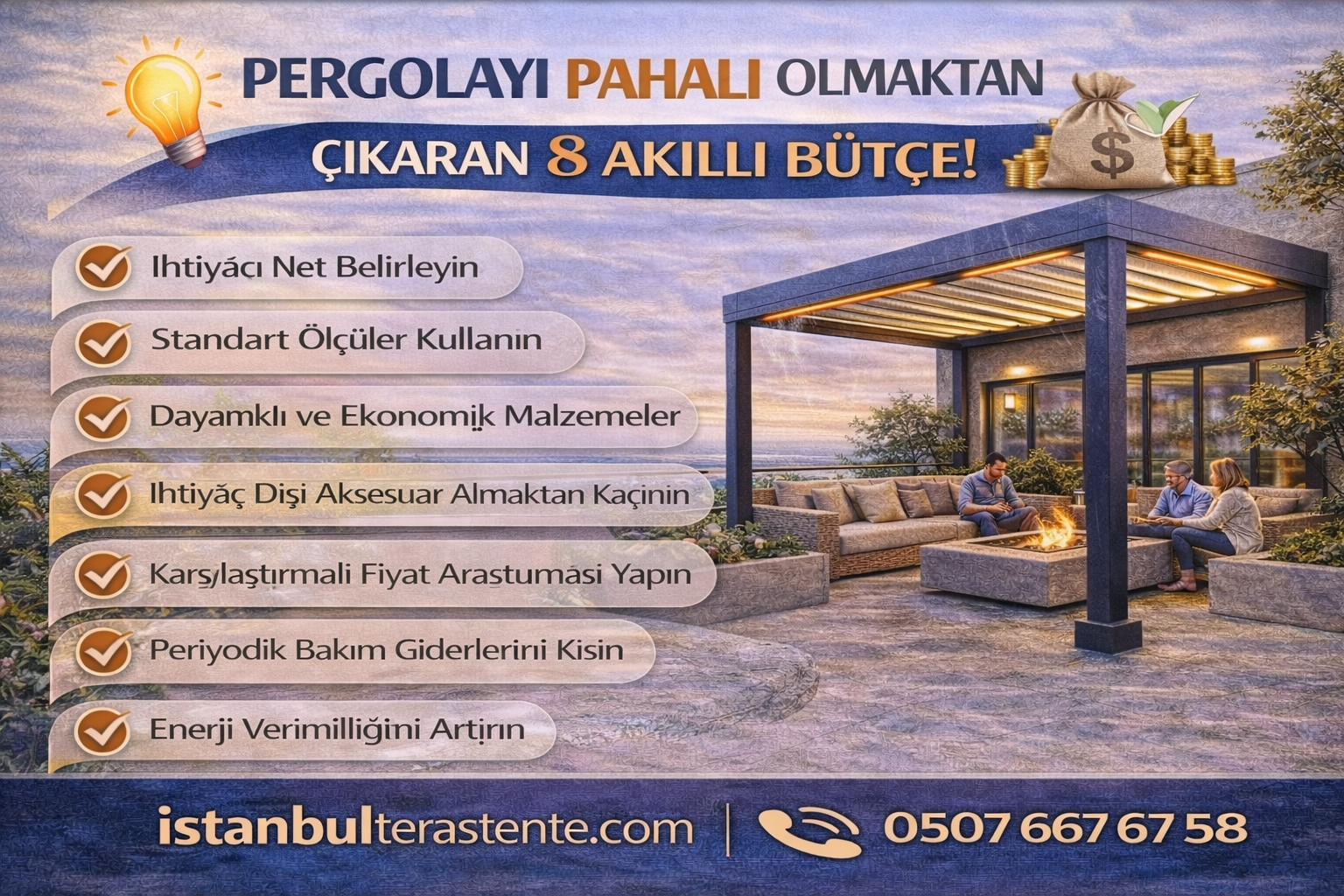 Net gerçek: Pergola için “pahalı/ucuz” hükmü, yalnızca fiyat etiketiyle değil; dayanım + konfor + kullanım süresi + servis/bakım toplamıyla verilir. Bu yaklaşım, “toplam sahip olma maliyeti”dir.