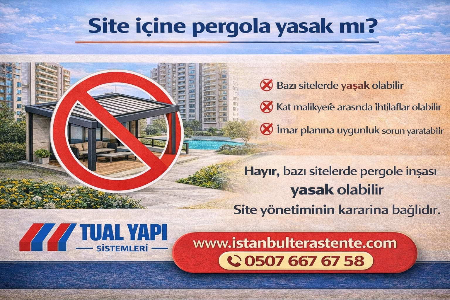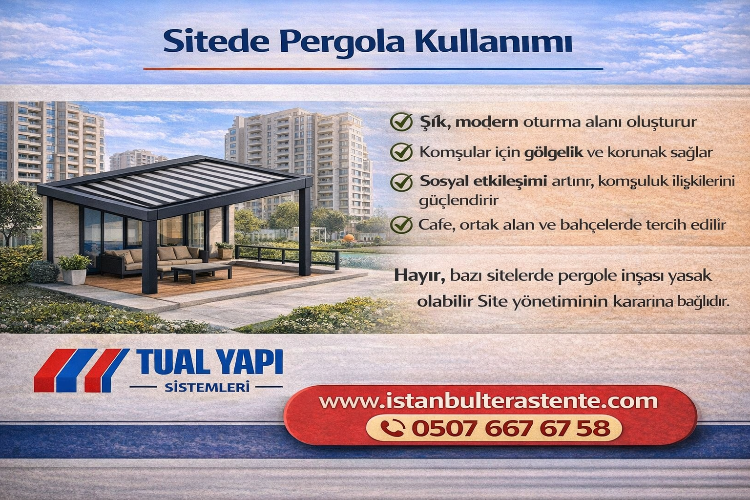 Belediyeden bağımsız olarak, site içindeki pergola uygulamaları; kat mülkiyeti kanunu, site yönetim planı ve ortak alan hakları çerçevesinde değerlendirilir. Bu yüzden “benim dairem, istediğimi yaparım” yaklaşımı site yaşamında geçerli değildir.